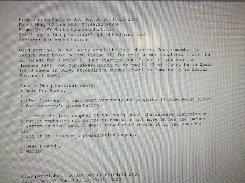 畢業十多年後,听闻Dr. Szeto結婚了,信主了,我大大的替他高興。今年1月,疫情開始了,想等著疫情結束了再去。3月18日正在吃晚飯,忽然收到信息,說Dr. Szeto 在醫院,要看他的要趕快,我剛發出“明天早上去行嗎?” 下一個消息就是,“他剛剛離開了。” 眼淚流下來,為我的恩師和領路人。但我想起他信主了,悲傷又輕了些,因為他在主的天堂,我有一天會再見到他的。